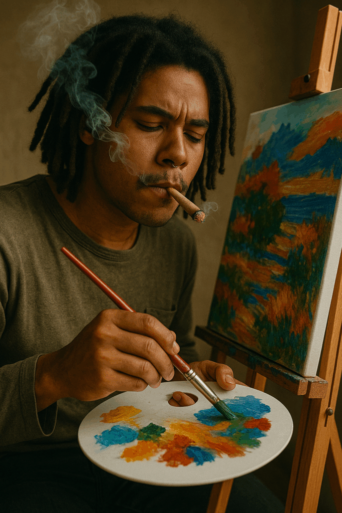 So light up, loosen up, and let the art happen. Your next masterpiece might just be one puff away. 🎨💨